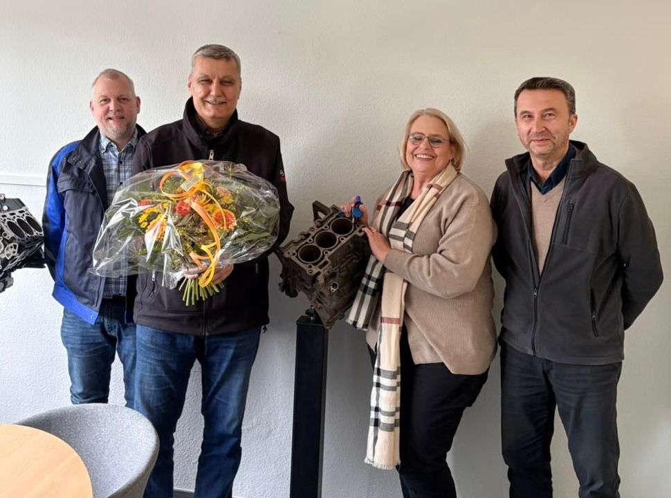 Brühl kentindeki kendi iş yerindede sürprizle karşılaşan Memiş, kendi fabrikasının üst düzey ekibi kalite şefleri mühendislerinden övgü dolu sözlerle karşılaştı. Türk döküm motor ustasına 3D ile yapılmış özel minyatür motor bloku ile çeşitli hediyeler takdim edildi.