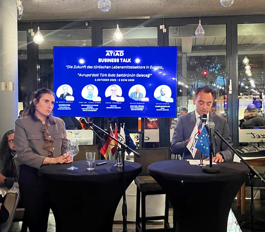 ‚ATİAD Business Talk’ etkinliği kapsamında ‘’Avrupa’daki Türk Gıda Sektörünün Geleceği’’ adı altında bir panel düzenlendi. Düsseldorf Finest Lezzet Restorantında düzenlenen etkinliğin moderatörlüğünü, Dr. Murat Bayizit (TIOGA Food Ltd. Yöneticisi) yaparken, Prof. Dr. Tanju Aygün (CBS Unıversity Parekende ve Servis Profesörü), Haluk Öznesin (DEPO Marketler Kurucu ve Yöneticisi), Ertan Kesgin (Uludağ Gazozu Almanya Sorumlusu) ve Erkan Türkoğlu (TOK GmbH Finans Müdürü) konuşmacı olarak katıldı.