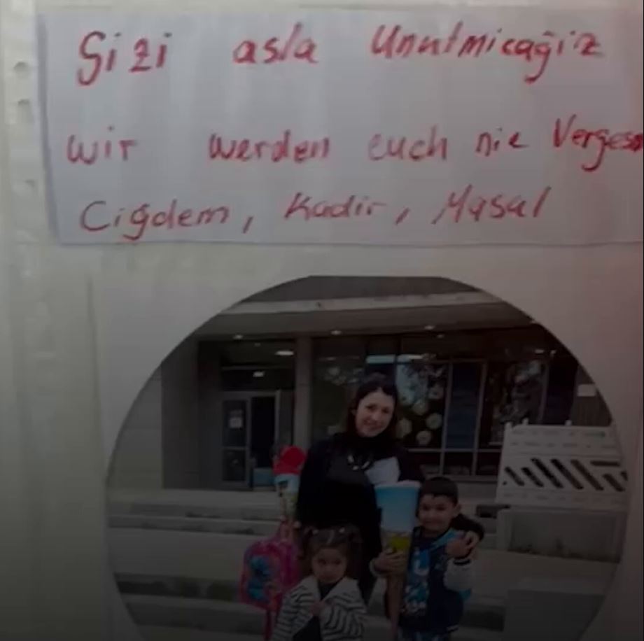 Aileyi tanıyan komşular ve yakın dostları, Almanya’daki evlerinin önüne oyuncaklar ve mumlar bırakarak yas tuttu. “Sizi asla unutmayacağız” mesajları evin önünde duygusal anlara sahne oldu.