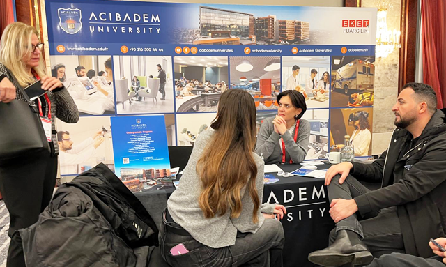 Fuarda Acıbadem Üniversitesi’de yer alarak, ziyaretçilere üniversite hakkında bilgi verildi. Acıbadem Üniversitenin Uluslararası Öğrenciler ve Akademik ilişkiler Ofisi Müdürü Gamze Kemerli, Üniveristerinin Ataşehir’de olduğunu ve sağlık alanında eğitim verdiklerinin altını çizdi ve şu şekilde devam etti: ‘’Beş tane fakültemiz var: Tıp Fakültesi, Ezcacılık Fakültesi, Sağlık Birimleri Fakültesi, İnsan ve Toplum Bilimleri Fakültesi ve Mühendislik ve Doğa Bilimleri Fakültesi. İngilizce eğitim veriyoruz, Türkçe verdiğimiz programlarımız da var. Sağlık alanında en ileri düzeye sahip laboratuvarlarımız ve similasyon merkezimizle bütün öğrencileri Acıbadem Üniversitesi’ne bekliyoruz.’’