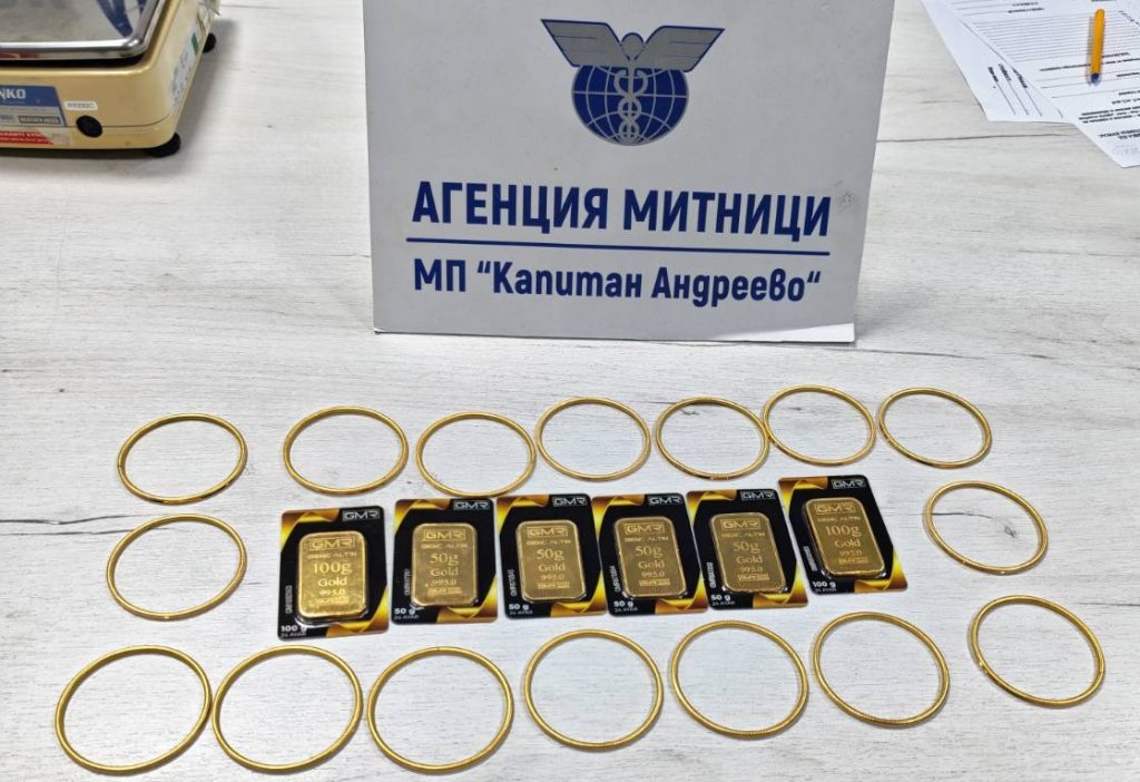Bulgaristan’daki Kaptan Andreevo gümrük memurları, gerçekleştirilen iki ayrı denetimde, gümrük memurları toplam değeri 161 bin avroyu aşan beyan edilmemiş altın külçeleri ve ziynet eşyalarına el koydu.